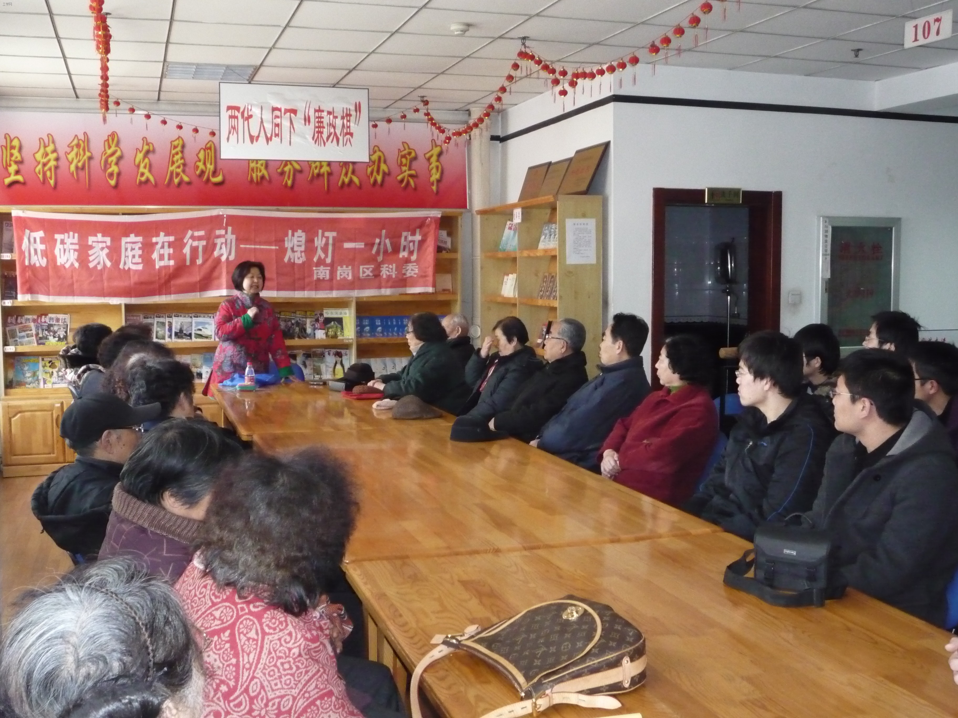 上午9:00,活动准时开始,哈尔滨绿大地环保科技开发有限公司董事长、绿色中国消费联盟主席孙丽萍老师,为在座志愿者讲解低碳生活和环境保护的相关知识。据悉,为倡导此次低碳行动,文化家园社区居委会将于今晚8:30到9:30组织居民进行熄灯一小时活动。