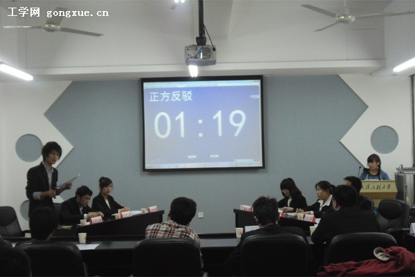 接下来进入了对辩环节,正反方火药味十足,以慷慨激昂、又充满理性的语言阐述各自的观点。正方以新加坡为例,抛出“新加坡人比中国人天生素质高”的问题,而反方则以对方所提出的“制度存在哪些具体漏洞而使商家有机可乘?”问题反复质问对手,现场气氛迅速升温,达到白热化。