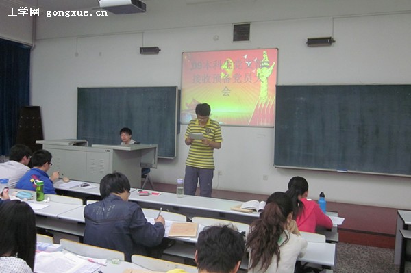 2012年5月29日18:30,在21B 204中教室,我院09级本科生党支部召开支部党员大会,主要讨论牛腾腾等22人入党事宜,经过党员大会讨论,同意接收牛腾腾等22人成为中共预备党员。