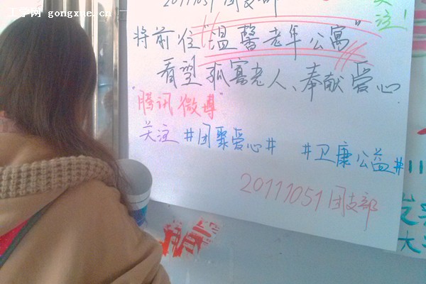 希望通过本次团聚爱心的大力宣传,可以让更多的同学加入到我们献爱心的队伍中来,把奉献落实到实处,为爷爷奶奶们送去我们最诚挚的祝福。让我们共同期待11月11日,传递温暖、传递爱,我们在路上。腾讯官方微博将会同步此次团聚爱心的最新动态,我们期待您的关注。