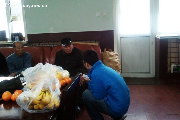 早早的,同学们八点半在逸夫馆门前集合,为今天的团聚爱心首次之行做着充分的准备。9点10分,我们徒步来到了温馨老年公寓,让大家欣慰的是,管理这里的叔叔阿姨非常热情的招待我们,为我们介绍了这里每一位老人的具体情况。同时,还向我们说明,这里有一位96岁高龄的奶奶腿脚不是很好,不能和我们在活动室里面畅谈、交流,但允许我们去奶奶住的地方问候一下。老人们看到孩子们来看望他们,脸上露出幸福的微笑,和大家谈天说地,其乐融融。由于大部分爷爷奶奶的牙口不是很好,细心的同学把苹果拿到厨房切成了小块,为爷爷奶奶们提供了方便。看着老人们幸福的样子,所有人都感到非常满意。