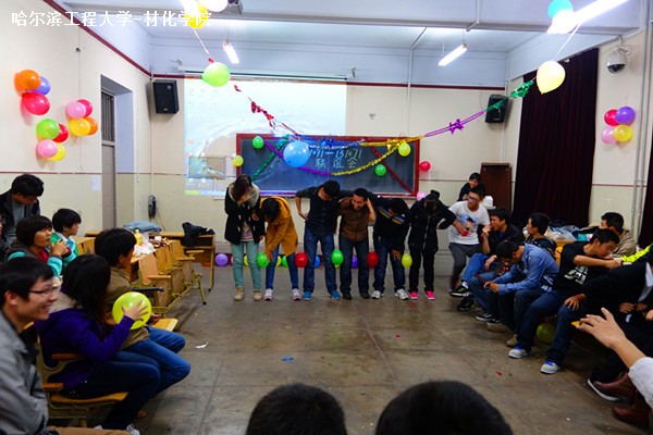 表演过后这是两班精心准备的多人游戏开始了。12级的同学们带着大家找老乡,夹气球,增进和学弟学妹的感情,并有学长代表为大一新生答疑解惑。帮助他们适应大学的学习生活。大一这边是轻松愉快的‘非诚勿扰’游戏,使得晚会越来越精彩。