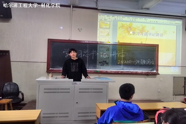 会议上,由两班团支书对此次团活进行宣讲,接着大家一起观看了习近平总书记就任讲话的视频,最后由学生自由发言,谈谈自己对中国梦的看法。