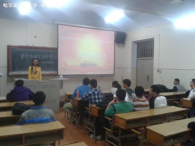 9月24日晚6时整,20131011团支部在11号楼0135教室顺利召开“跟随时代脚步,奉行社会主义核心价值观”主题团活,全班35人全部到场。