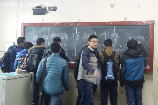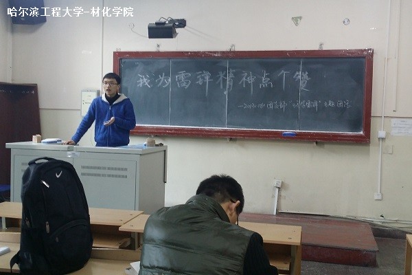 3月7日上午10点,此次团日活动在11#0134教室按时开展。活动采取了最简单的活动形式,由班长介绍关于“学习雷锋纪念日”的相关信息,并从宏观层面大致介绍雷锋精神。之后,由同学们表达自己心目中雷锋精神。最后同学们将自己理解的雷锋精神在黑板上用文字表达出来。