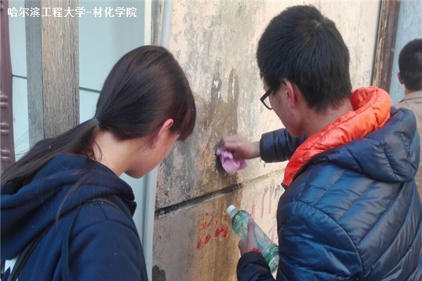 上午8时,参与此次活动的成员带着清扫工具准时来到主楼前集合。来到红星小区后,活动负责人为同学们划分了清扫区域。天气虽然寒冷,却没有降低大家劳动的热情。同学们分工合作,有的人负责洒水润湿,以方便用小刀将广告刮下;有的人负责用抹布将墙壁擦拭干净。虽然任务很繁重,同学们的手也冻得通红,但是大家依然高效率地完成了任务,得到了负责人与过路人的一致好评。