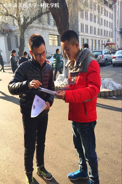 11时30分,团支部第二小组于大学生美食广场门口集合,给过路的同学发放传单。虽然天气很冷,场面依然热火朝天。21时30分,团支部第三小组于第七学生公寓进行寝室宣传。他们选择了三个寝室进行宣传讲解,并得到同学们的积极配合。