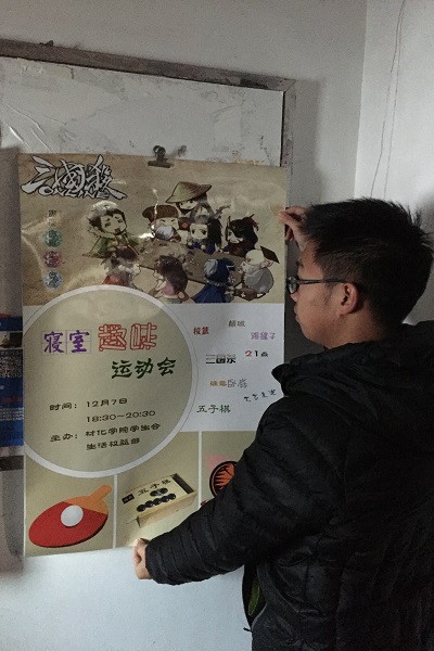 此次寝室趣味运动会包括男女生都要参加的才艺展示,室内项目女生是五子棋和谁是卧底,男生方面则是五子棋,三国杀和二十一点。室外运动女生踢毽子,男生乒乓球颠球和投篮。比赛规则是每个寝室每个人报一个项目,最后寝室总分排名。