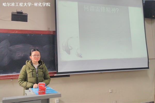 本次团日活动由团支部书记姜雪迎主持。团支部书记为大家详细介绍雷锋精神的内涵、雷锋的经历及其先进事迹,更加清晰地展现了雷锋服务大家、热心为人的高尚品格。同学们也踊跃发言,纷纷举出雷锋同志舍己为人的模范事例,赞扬其高尚人格,并决定争当新时代活雷锋。团支部成员观看了《感动中国2015年度人物颁奖典礼》,了解了当代雷锋精神传递者的感人事迹,更深层次地体会到雷锋精神的内涵。