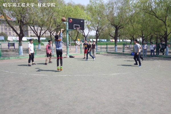 上午10时整,两团支部成员纷纷到达篮球场,共同选出两名裁判员,开始激烈的篮球赛。没有参赛的同们学在场外为球员们加油助威,熟悉篮球赛的同学为其他同学讲解赛场情况。经过一个多小时的角逐,比赛结束。