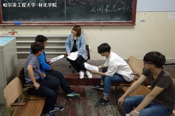 5月31日晚6时30分,由20151014团支部组织的品质团活——“惊艳四月天”话剧联排于11号楼0122教室举行。团支书董倩玮担任排练负责人,20151053班长王森担任话剧导演。