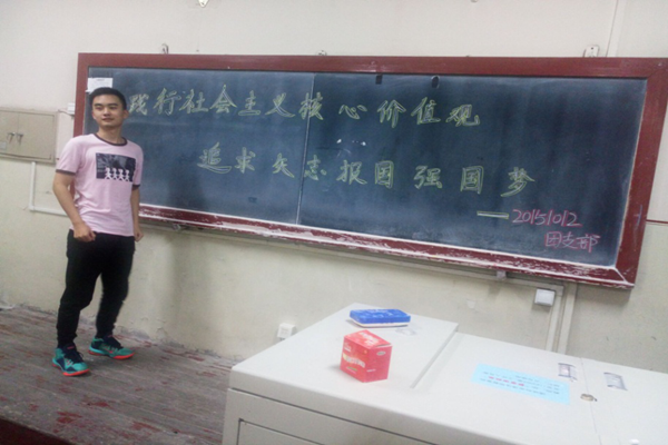 在活动上,由班长引导大家对主题有一定的理解,然后大家互相讨论,同学们进行了认真深入地讨论。接着就是请同学们上台发言,大家紧紧围绕主题,从自身实际出发,畅谈社会主义核心价值观内涵,明确新一代大学生的历史使命,全方位、多角度阐述我们大学生的可为之处。