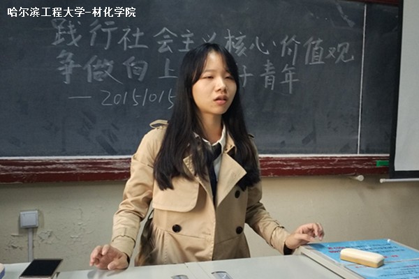 活动开始,同学们一起观看事先准备的简介ppt 并且通过ppt初步了解社会主义核心价值观会议内容。团支书向同学们介绍新闻报道当中社会青年的形象和行为。 活动最后,同学们站在青年立场上讲述自己对于社会主义核心价值观的理解,并畅谈心中理想,立下远大志向。