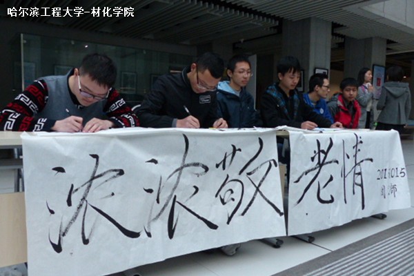 活动现场以“九九重阳节,浓浓敬老请”十字的书法为背景,书法苍劲有力,吸引很多同学围观。本团支部成员积极向同学们宣传活动。参加活动的同学,坐在活动现场提笔认真给家里长辈写信,写下自己的心里话,表达自己对长辈的思念之情。