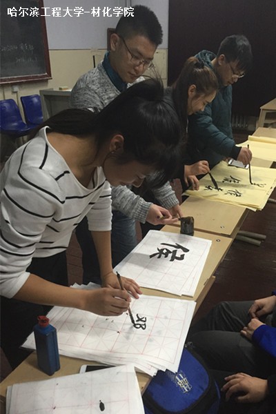 首先由班长丁峤以及邀请到的书法社成员陈逸冲同学为大家简单介绍了中国古典艺术书法的发展历史,接着由两位为同学们讲解了写书法的基本技巧。在丁峤以及陈逸冲同学的带领下,大家积极参与活动,踊跃上前亲自体验了书写毛笔字。