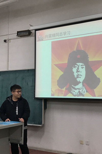 50多年来,雷锋精神犹如一座永不熄灭的灯塔,指引人们向典型看齐,热心地去帮助他人。2017年3月6日18时30分20161001团支部于21b教学楼114中教室举办以“弘扬雷锋精神,创建和谐校园”为主题的团日活动,本支部17位同学参加。