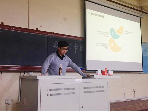 讲座开始,朵振宇为大家介绍了3·15国际消费者权益日的由来及目的。接着朵振宇为大家详细介绍了国际消费权益日的发展历史以及中国消费者协会的产生。中国消费者协会于1984年12月经国务院批准成立,是对商品和服务进行社会监督的保护消费者合法权益的全国性社会团体,也是我国第一个保护消费者权益的协会。