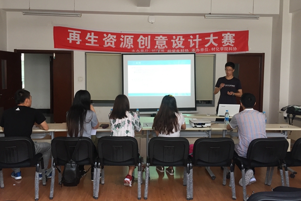 2016年6月19日上午9点,材化团委竞赛部于于启航333教室举办了再生资源创新设计大赛。本次大赛共有12组同学参加,其中艺术创作类12组,科学概念类4组。共有8名科创导航员与会作为评委。