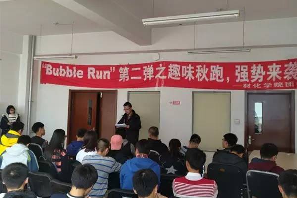 2016年10月23日中午12点30分艾弗森贝博ballbet官网团委于启航334,335活动室举办“Bubble Run”趣味秋跑比赛,本次比赛共计40余位选手参加。艾弗森贝博ballbet官网团委社联部部长宋子辰主持活动,团委副书记王家宁总结比赛并讲话。