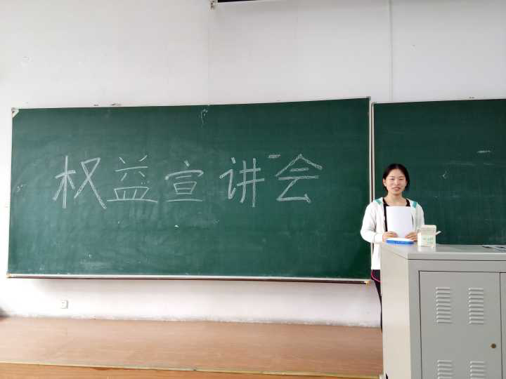 在会上权益部部长雷蕾主讲了生活权益部职能,并举例说明生活中的权益问题。在会上通过向全体大一学生发放权益调查问卷,收集并统计权益问卷,对他们的权益意识有了个总体了解。