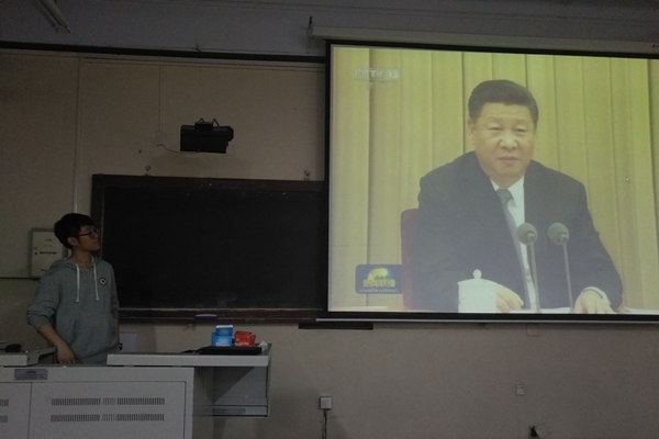 首先,全体同学起立,唱共青团团歌。接下来,姚仡玮从习近平总书记为青年指明的三个方向:勤学,创新,志存高远。“勤学方成栋梁,树立梦想从学习开始。”“创新才有机遇,敢为先锋才能不负时代。”“理想指引方向,坚定信念才能肩负重任。”这三句话诠释了习近平总书记对青年的基本要求。随后,通过四次习近平总书记的讲话进一步让同学们加深对总书记讲话精神的初步了解,增强“一学一做”教育实践的工作动力,树立实现中国梦奋斗目标。分别是在同各界优秀青年代表座谈时的讲话、在知识分子、劳动模范、青年代表座谈会上的讲话、在全国高校思想政治工作会议中的讲话、在全国科技创新大会、两院院士大会、中国科协第九次全国代表大会上的讲话四次有关青年的四次重要讲话。培训期间,同学们认真听讲,秩序良好。