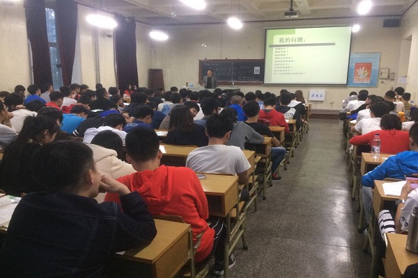 蔡文学老师讲话风格风趣幽默,并为我们举了很多他的亲身经历,讲座过程中又找学生进行互动,同学们听得很认真,教室里不时传来阵阵笑声。