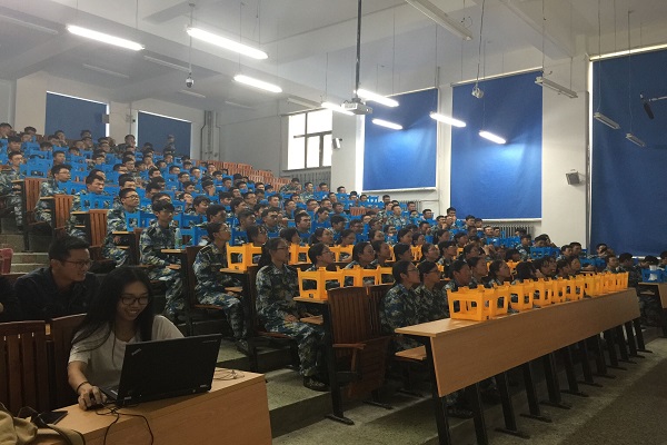 紧接着姚远洋学长上台为大家介绍他的科创经验。首先以一段飞行器模型的视频作为开篇,开始了他的科创之旅。姚远洋学长详细介绍了飞行器、“水下鲨鱼”以及智能机器人三个小方面,让大一新生们燃起了对科创的渴望。被学长的证书、奖牌震撼过后,大家积极踊跃的提问,相信大家会对科创产生很大的兴趣。
