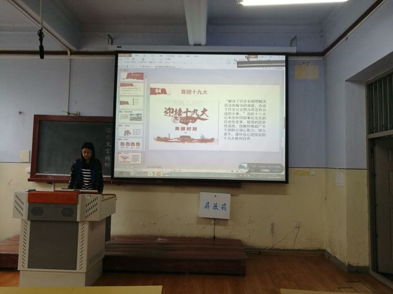 为迎接十九大的到来,9月16日9时整,20161013团支部在11号楼0129中教室开展“回首辉煌,展望未来”主题宣讲会,本支部大部分同学参与其中。