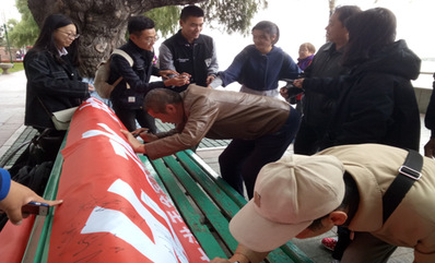 除此之外,很多小孩子在家长的支持和鼓励下也在宣传横幅上写下自己的名字。由于游客们的热情支持,条幅很快便签满了过往游客的姓名。最后,此次活动在游客的欢声笑语中圆满结束。