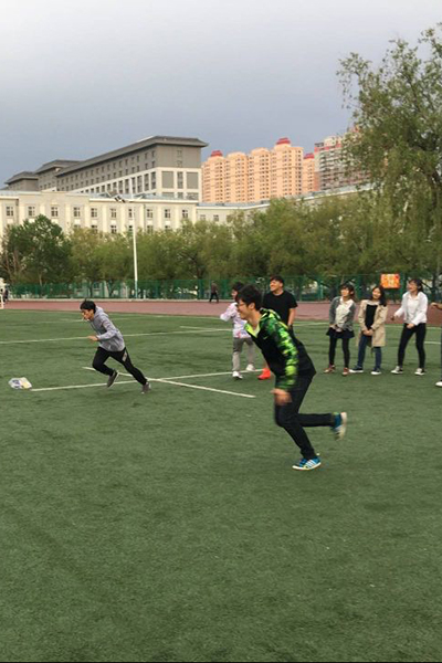 首先,大家在二公寓楼下集合,一同前往南体育场。第一个项目,是热身的贴人游戏,大家围圈而站,一个人是追捕者,另一人为被捕者,被捕者需在被抓住前站在圈中任一人身前,则该人成为新的被捕者,若被捕者被追捕者逮到,则该被捕者成为新的追捕者,原追捕者归队。第二个环节,是疾跑九宫格,在场地上摆上格宽一人高的九宫格,大家分为两队,每队队员依次奔跑放置一枚棋子或移动棋子,最先练成一条线队获胜。运动结束,大家分享事先准备好的美食,并到英语楼毛主席雕像前合影留念。