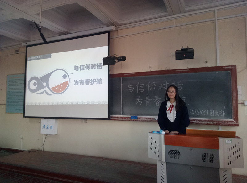 2017年10月13日十点整,20161001团支部在11号楼133大教室举办了以“与信仰对话,为青春护航”为主题的团日活动,本次活动全员参加。
