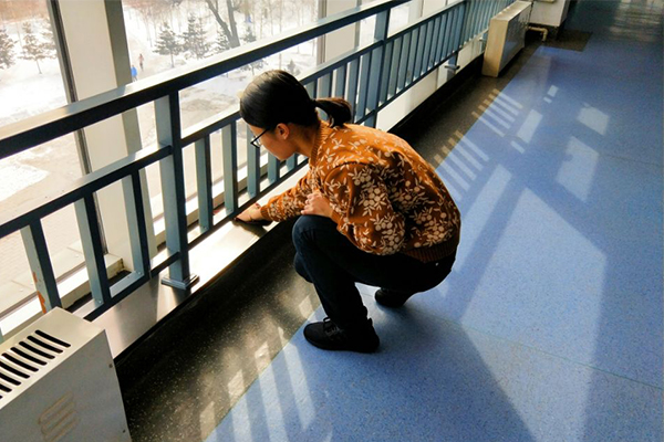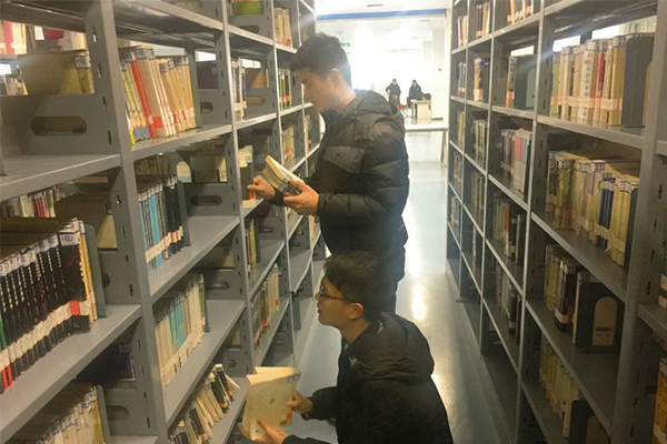 下午13时30分,同学们准时到达图书馆,被分成三队。其中,团支书孙楮宜带领团支部所有女生和少部分男生到图书馆五楼擦拭书架,组宣委臧鹏宇带领部分男生整理书架的图书摆放,张梦博同学带领剩下的所有男生到书库摆放图书。