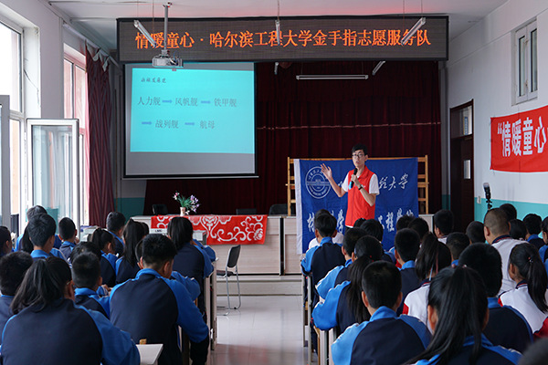 7月12日10时整,艾弗森贝博ballbet官网金手指志愿服务队“三下乡”暑期社会实践团于齐齐哈尔市龙兴镇中心学校开展船舶与海洋知识课堂活动,实践团成员王政、宋世宇担任活动主讲人。全体实践队员及龙兴镇中心学校学生参加此次活动。