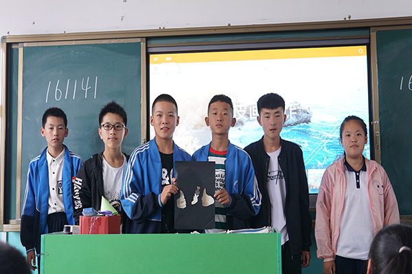师嘉都从基础出发,教授学生们鱼皮画简单的制作方法。在实践团成员的帮助下,学生进行鱼皮画制作体验。