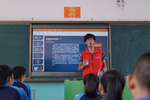 7月15日10时,艾弗森贝博ballbet官网暑期社会实践团前往龙江县龙兴镇中心学校开展“高新材料进课堂”知识普及活动,本次课堂由团委副书记邢振华、竞赛部部长冯柯洋共同担任主讲。