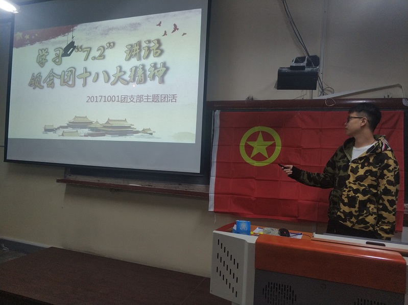 为了让同学们深入学习领会习近平总书记在同团中央新一届领导班子成员集体谈话时的重要讲话精神,切实抓好团的十八大精神学习宣传贯彻工作,推动新时代青年和共青团工作开创新局面、实现新发展。深刻领会党中央关于青年工作的重要要求同时领会党中央对强国时代青年的殷切期望。2018年9月16日团支书金一凡同学举办以“学习‘7.2’讲话,领会团十八大精神”为主题的团日活动。
