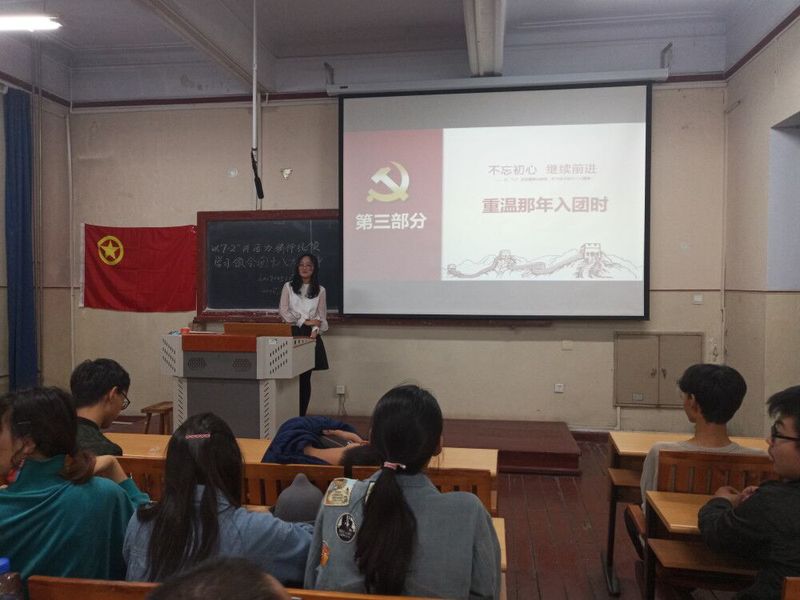 本次活动由团支书于程昊带领同学们了解习近平总书记在中国新时代对青年的殷切期望和重要要求。青年人做为新时代党的接班人要牢记使命,深刻领会习近平新时代中国特色社会主义思想,坚定不移的坚持党的领导,牢记习近平总书记的谆谆教诲。时刻以实现中华民族的伟大复兴为己任,传承中华精神,这是时代赋予青年的责任和光荣使命。青年是建设社会主义强国的生力军,青年身上肩负着希望。青年应把习近平总书记的期望和重要要求,牢牢把握为实现中国梦而奋斗的时代主题,切实增强政治性、先进性、群众性,努力成为社会主义建设者和接班人落实到学习和生活中,以实际行动响应号召。并且同学们共同重温入团时的仪式,回忆当初的决心和发下的誓言,不忘初心,继续前进为建设社会主义现代化强国贡献力量。