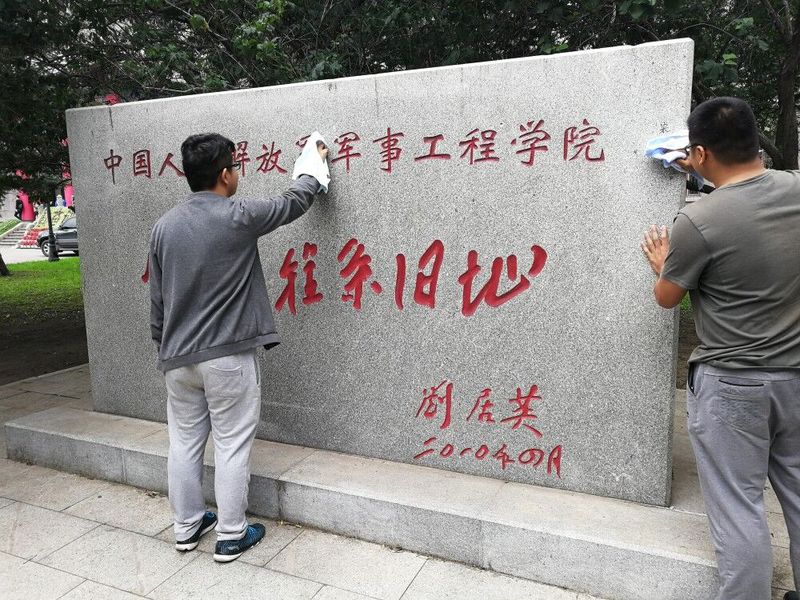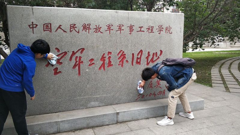 10月7日上午10时,于11号楼集合完毕后,同学们对中国人民解放军军事工程学院空军工程系旧址纪念碑进行了擦拭清洁工作。在清洁纪念碑的过程中,同学们对我校的辉煌历史有了进一步了解、对先辈们往昔的峥嵘岁月有了更深刻的认识、对取得的伟大成绩有了更自豪的认可感。