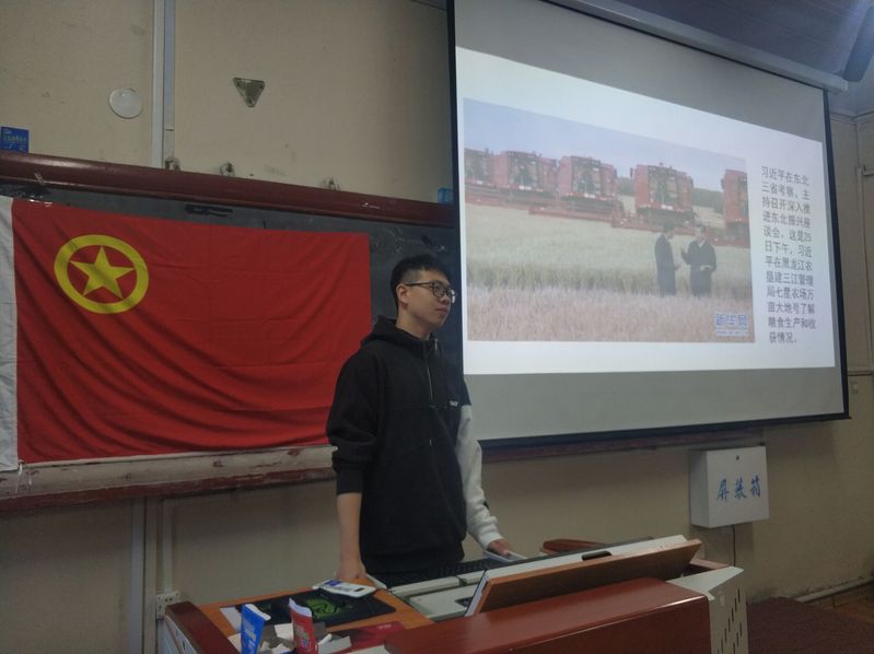 活动开展之前,团支书号召大家通过新闻、媒体自主了解习近平总书记在东北三省考察及深入推进东北振兴座谈会上的重要讲话精神。活动开始,团支书带领同学们观看了习近平总书记在东北三省考察及深入推进东北振兴座谈会上的一些发言,让同学们认识到东北地区是我国重要的工业和农业基地,在多方面的战略地位十分重要,关乎国家发展大局。通过深入的学习后,同学们拥有了了更深的理解,牢记习近平总书记的嘱托,要弘扬北大荒精神,胸怀全球,踏实作为。
