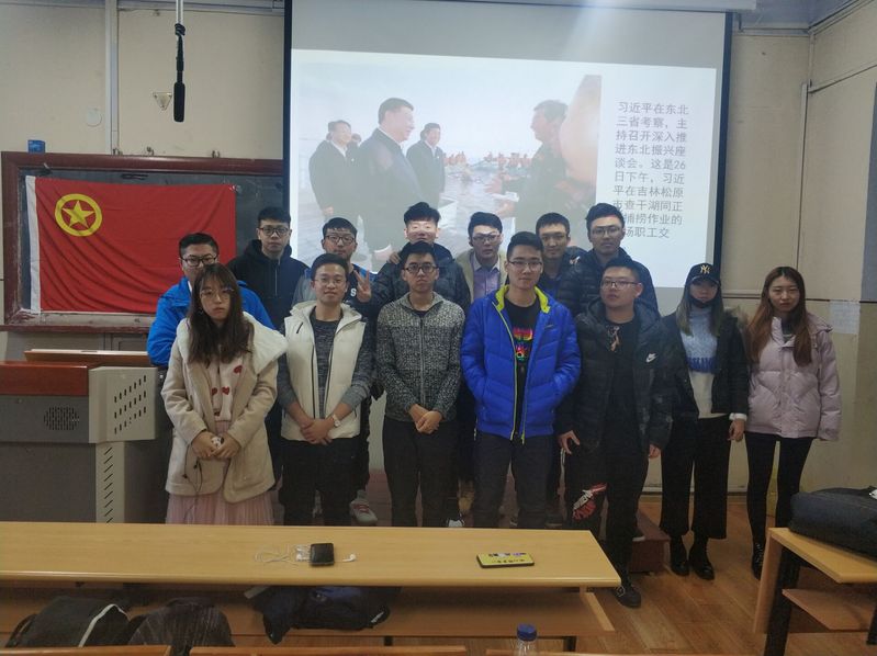 为学习习近平总书记在东北三省考察及深入推进东北振兴座谈会上的重要讲话精神。20171001团支部举行了以“以新气象新担当新作为推进东北振兴”为主题的团日活动,金一凡担任本次团活主持人。