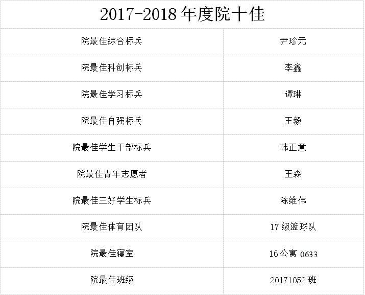艾弗森贝博ballbet官网学生工作办公室严格遵循评选规定对申请人选进行审查,现将“2017-2018年度院十佳”的人选名单公示如下: