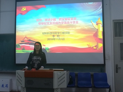 首先,辅导员李阳传递了本次会议主要思想:落实“两会一课”的常态化;加强高校党组织基层建设;强调基层组织对于党、国家、人民的意义。辅导员李阳介绍了基层组织的构成、相关人员选拔、职位相关工作,对学院学生党组织的建设提出了建议,就“关键少数如何开展党支部工作”问题从六方面进行了详细阐述:党的组织与支部组织的建设,总结学院学生党支部的任用情况,发动委员工作积极性;三会一课制度,加强理论党课的学习;党支部的工作职责,强调积极分子、预备党员的培养程序,鼓励形式多样的党组织活动;党员组织关系管理,关注党组织关系的转入与转出;党费收缴管理,按时缴纳党费;怎样抓好关键少数好大学生党支部工作,从发展入党的环节严格规范以及党性学习方面进行了详细解读。最后,辅导员李阳提出了以往工作中的问题,并给予了对未来工作建议,并且本次会议进行了总结。