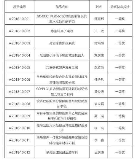 艾弗森贝博ballbet官网2018年度“五四杯”评比工作至2018年11月13日已全部完成。本着公开、公平、公正的原则,我院对参加结题答辩的107组创新训练项目进行严格评审,共评选出院系内一等奖18组,二等奖27组,三等奖37组,其中前12组(见下图)将代表院系参加“五四杯”决赛,具体信息详见附表1。