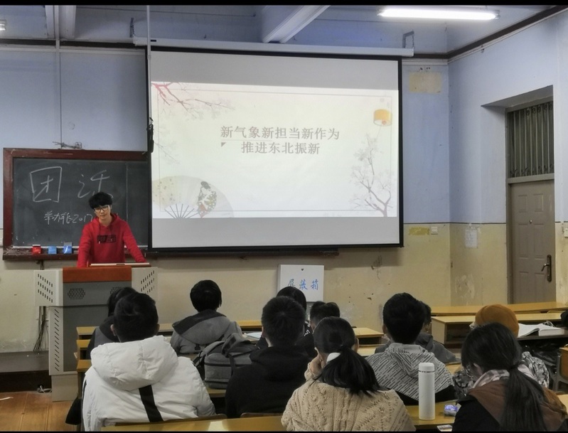 11月17日9时55分,20171011团支部于11#112大举办“以新气象新担当新作为推进东北振兴”主题团活,本次活动由团支书刘柳主持,团支部全体成员参加本次活动。