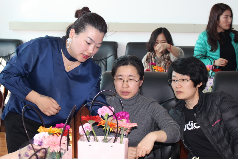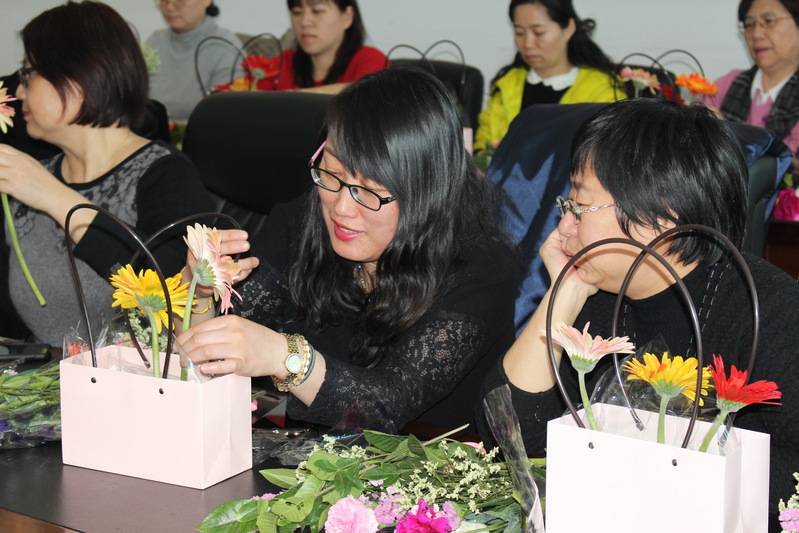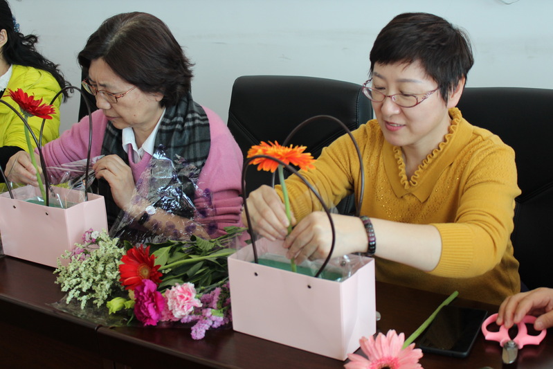 下午2点,参加活动的女教师早早就到达了现场,跃跃欲试的摆弄起了放在自己面前的花花草草。