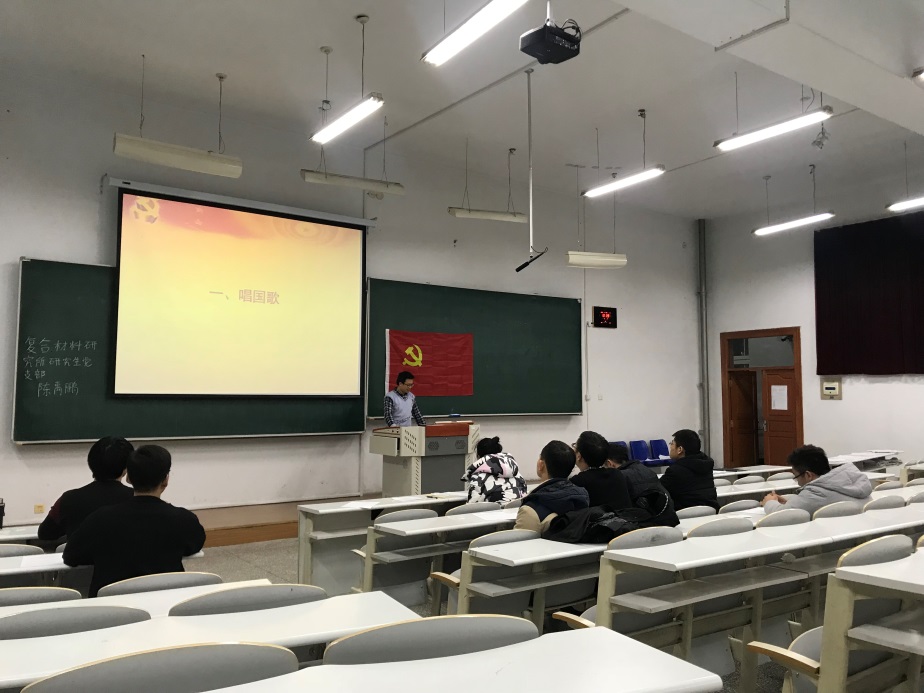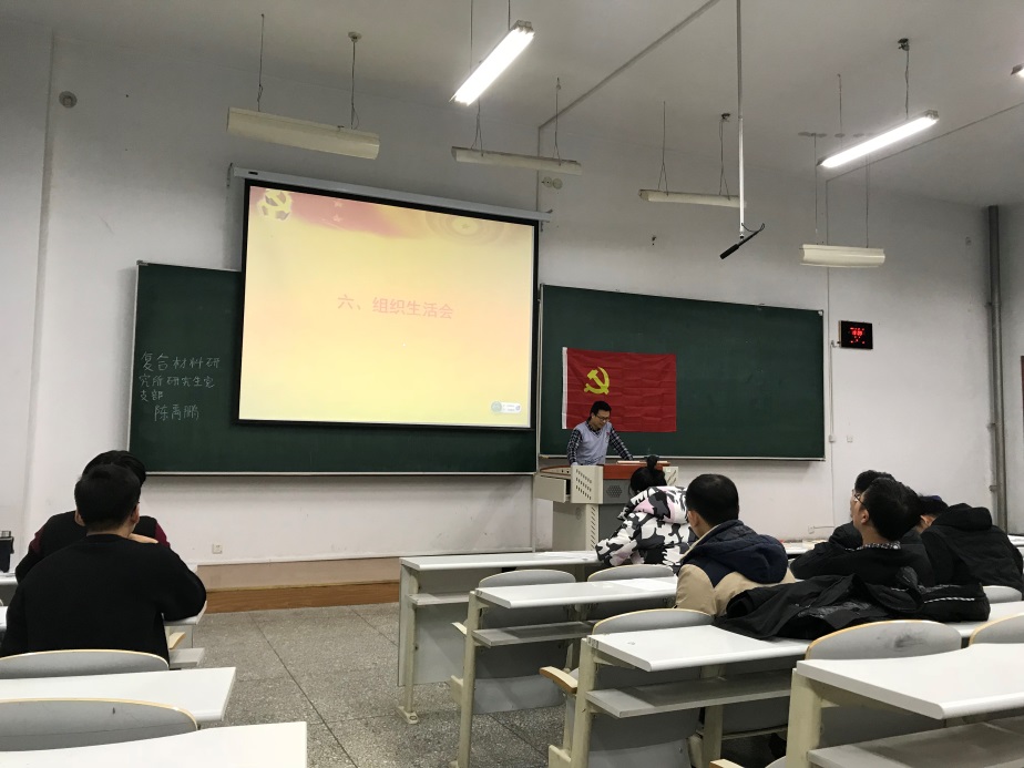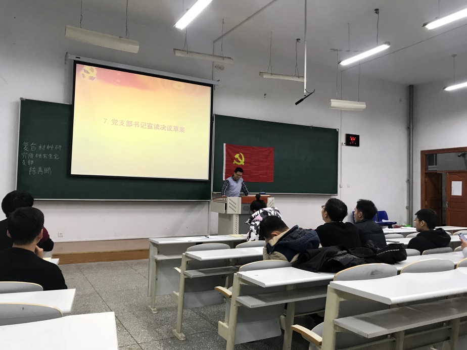 2019年11月27日,复合材料研究所研究生党支部党员在1#S203教室顺利召开了2019-2020学年支部全体党员大会,主题为:“预备党员转正、自检自查、学习《习近平关于‘不忘初心,牢记使命’论述摘编》心得体会”。复合材料研究所11名学生党员参加此次大会。大会由复合材料研究所研究生党支部支部书记边城鑫同志主持。