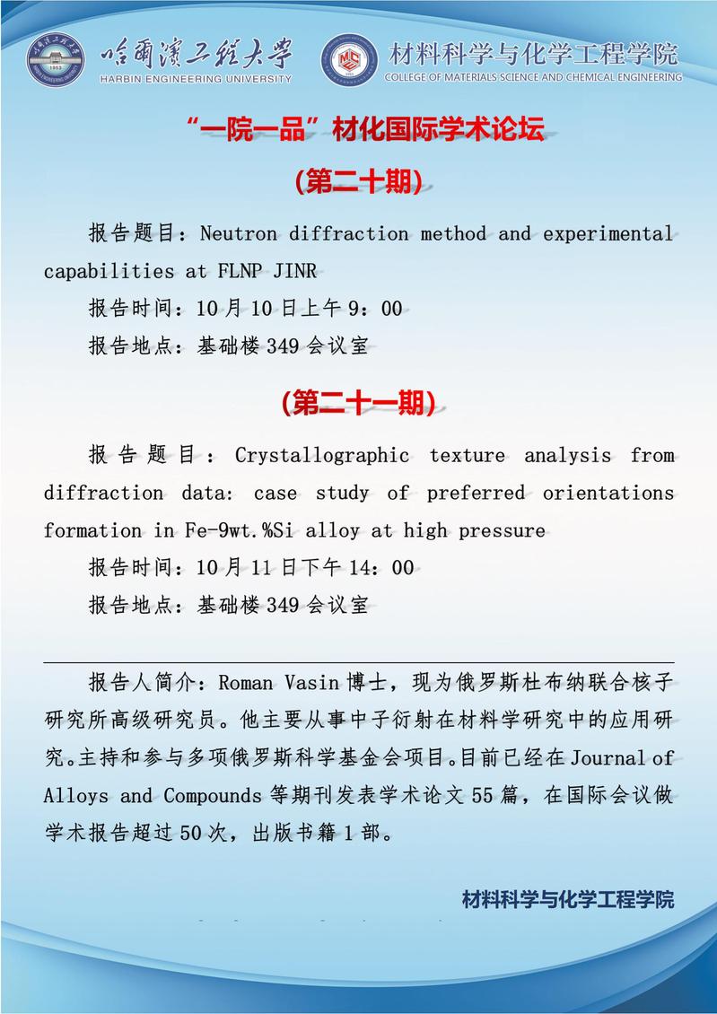 “一院一品”材化国际学术论坛(第二十期)(二十一期)