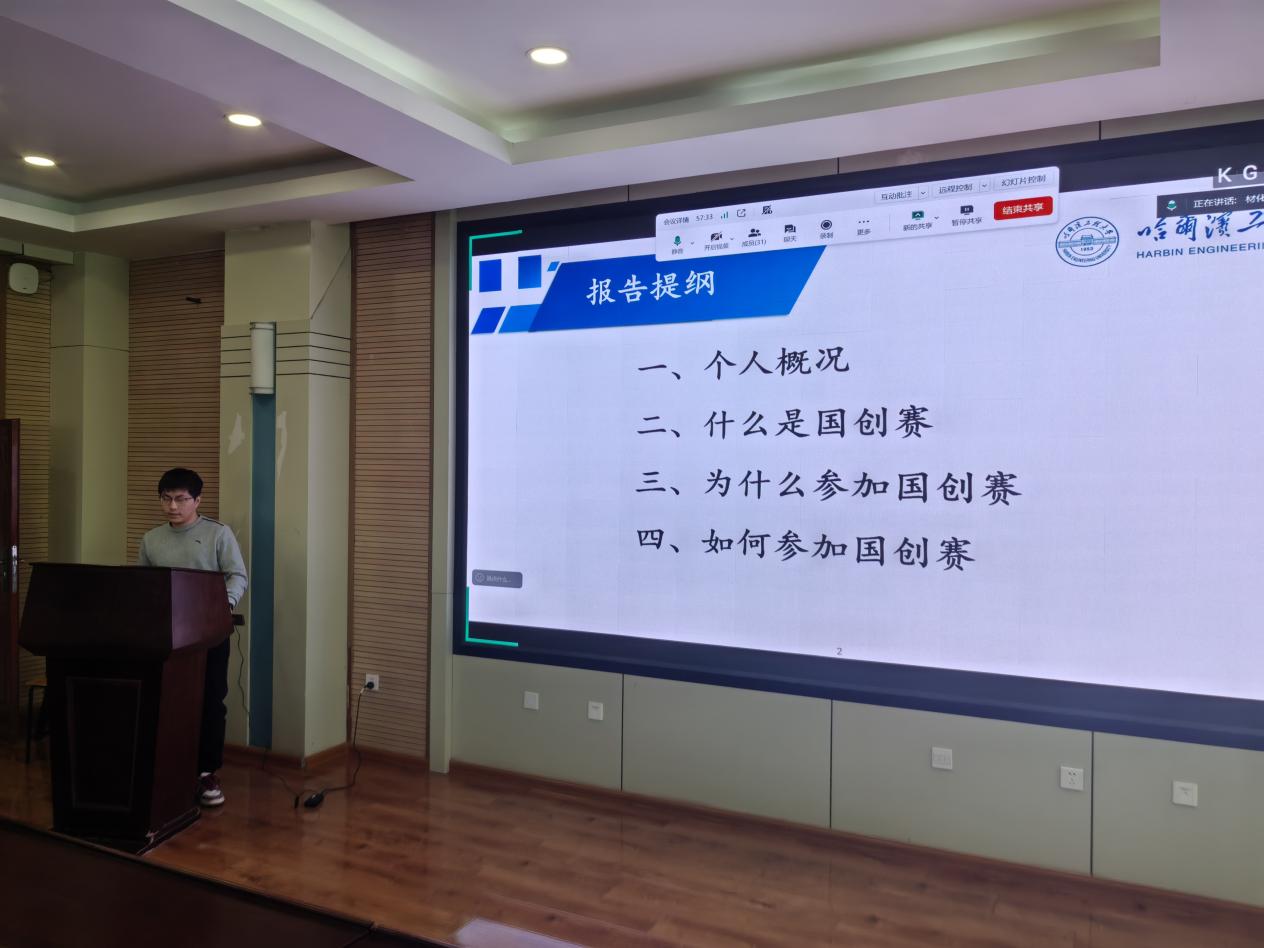最后,会议进入经验分享环节。学校首个国创赛产业赛道金奖团队代表、学院2023级博士研究生赵光达从国创赛参赛要求、赛程安排和材料打磨等角度分享了国创赛的参赛经历与感悟。学校首个研究生“双碳”大赛全国冠军、学院2024级硕士研究生张欣从呈现细节发力,讲解PPT制作逻辑暨如何让项目的政策背景和核心技术贴合研究生“双碳”大赛的设计要求。现场互动积极,气氛热烈。