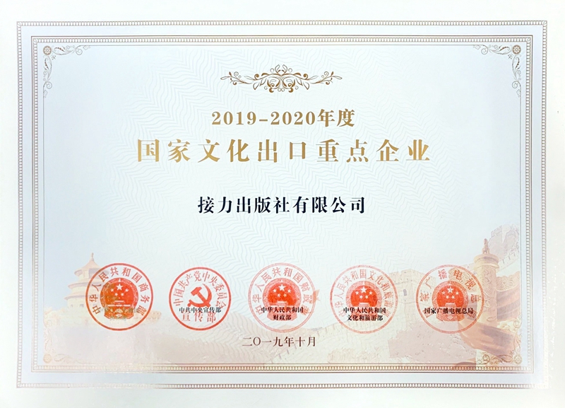 2019年10月接力出版社mile米乐集团官网获得2019-2020年度国家文化出口重点企业