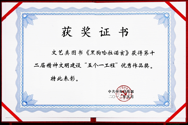 2012第十二届精神文明建设“五个一工程”优秀作品奖《黑狗哈拉诺亥》-中宣部